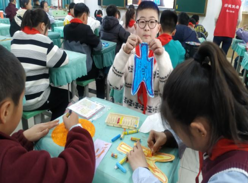 随后,同学们在社教老师的带领下用准备好的材料,模仿古人开启了一场“古钱币手工制作”工匠之旅——制作古钱币挂饰。同学们首先对钱币的外形和纹饰进行设计,随后在对刀币、通宝等基本钱币形态制作的基础上,以剪纸、擦色的方法,制作出风格独特的古代钱币。