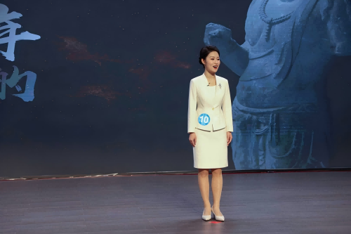 郑州博物馆讲解员张晶晶依托馆藏文物佚名菩萨石造像,栩栩如生地讲述了巧夺天工的唐代石刻造像,获得专业组“十佳讲解员”称号。